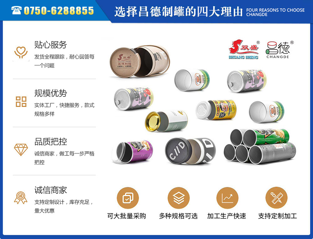 江門市昌德五金制罐有限公司位于江門與珠海臨近的古井鎮(zhèn),是專業(yè)生產(chǎn)紙罐,食品紙罐系列的包裝研制、開發(fā)、生產(chǎn)的廠家,從建廠至今,公司本著“重合同、守信用”的原則,以“質(zhì)量求生存,客戶至上”為經(jīng)營宗旨,贏得了很好的信譽,公司擁有國內(nèi)一流的技術(shù)設(shè)備和多年的生產(chǎn)經(jīng)驗。年產(chǎn)休閑食品紙筒500萬左右,紙筒2000萬支左右,易拉罐,食品罐等1000萬左右,產(chǎn)品銷往各地。我廠是以高科技為先導,以技術(shù)創(chuàng)新整合為手段,成為迅速崛起的專業(yè)性包裝企業(yè),憑借艱苦的創(chuàng)業(yè)精神和集體智慧,采用規(guī)范的現(xiàn)代企業(yè)運行機制,形成具有鮮明特色的企業(yè)文化模式和管理...
